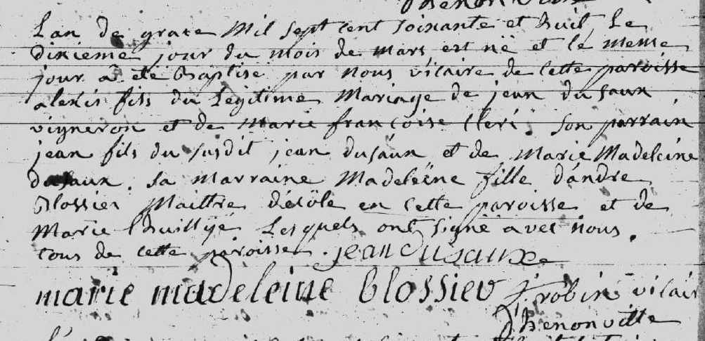 H Christophe DUROCHER /1686-1707/ Marié avant 9 janvier 1706, Saint martin, 35, France, avec Olive BUSSON 1686-1707