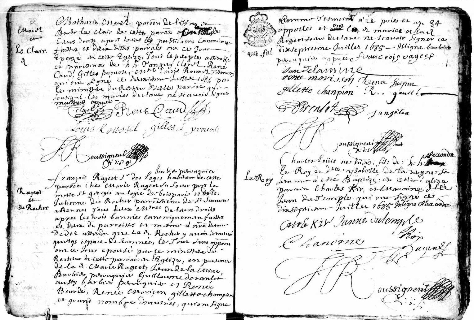 F Julienne DUROCHER /1660-1685/ Mariée le 17 juillet 1685, Saint pierre en saint georges, Rennes, 35, France, avec François RAGEOT, sieur des Loges