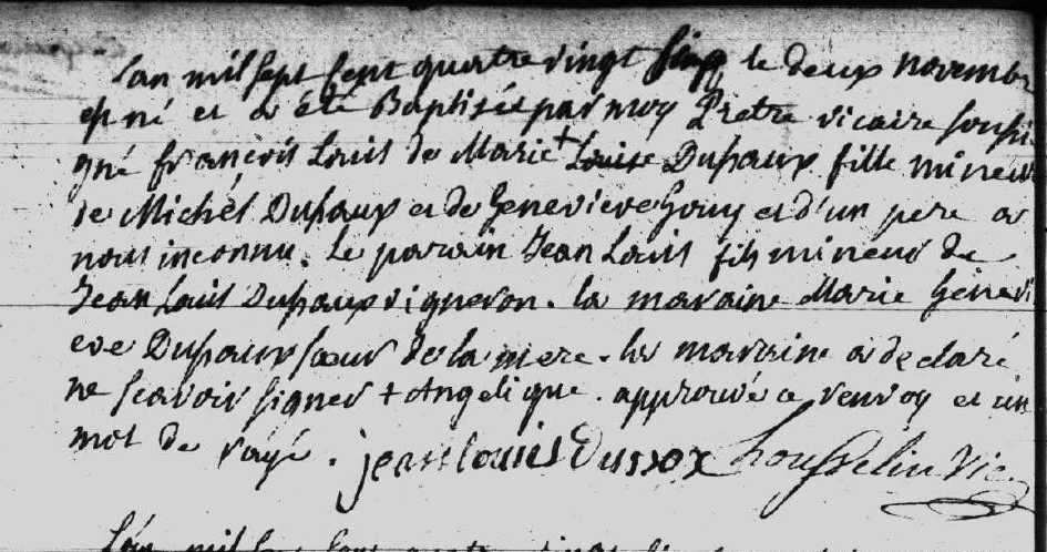 Père : DUSSAUX Louis ( < 1750 - > 1780 )