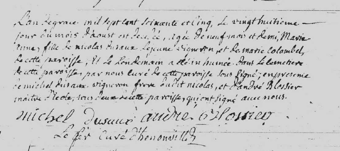 Il signe michel duSsauxDécès : 30 septembre 1813 à Hénonville 60119