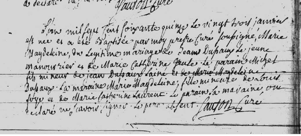 Père : DUSAUX Jean ( < 1753 - > 1776 )