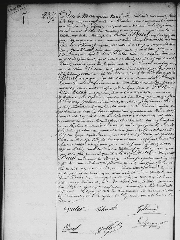 Mariage : 9 mai 1868 à Paris 12ème 75112