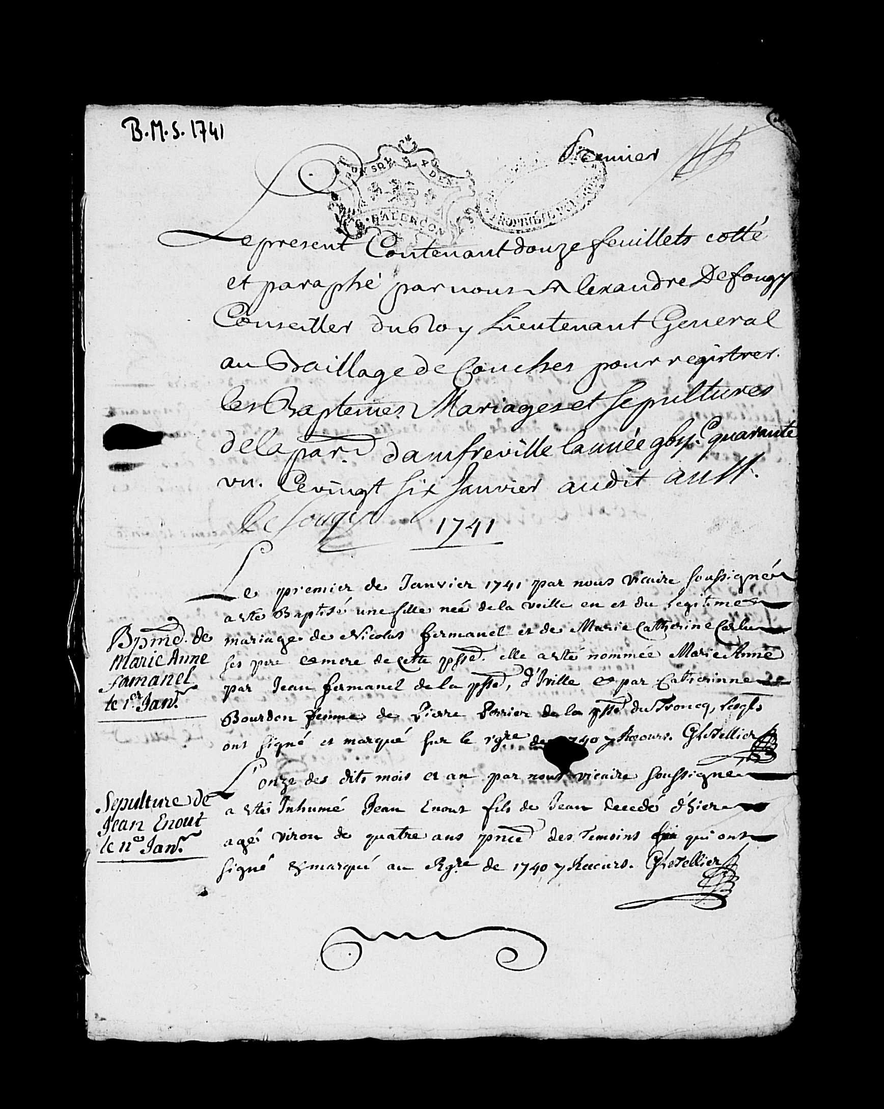 Inhumation : 11 janvier 1741 à Amfreville-La-Campagne 27370