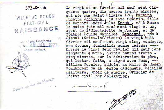 Père : ENOUT Bernard André Jules ( 1921 - 2012 )