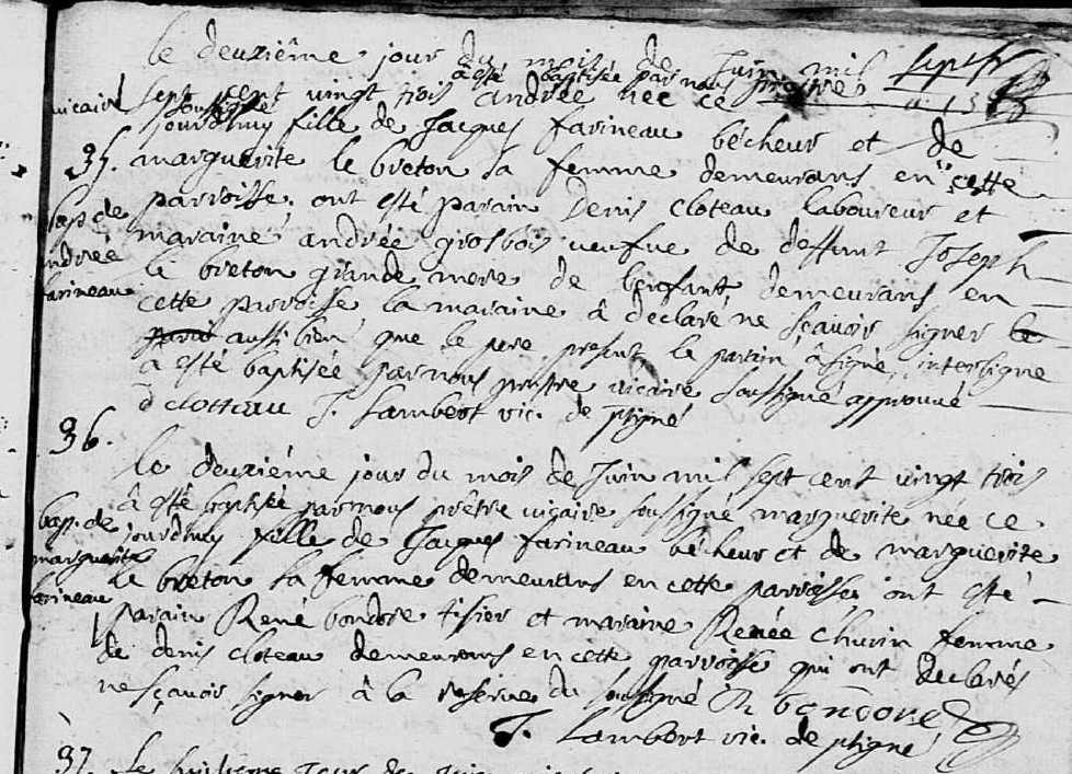 Père : FARINEAU Jacques ( < 1701 - > 1723 )