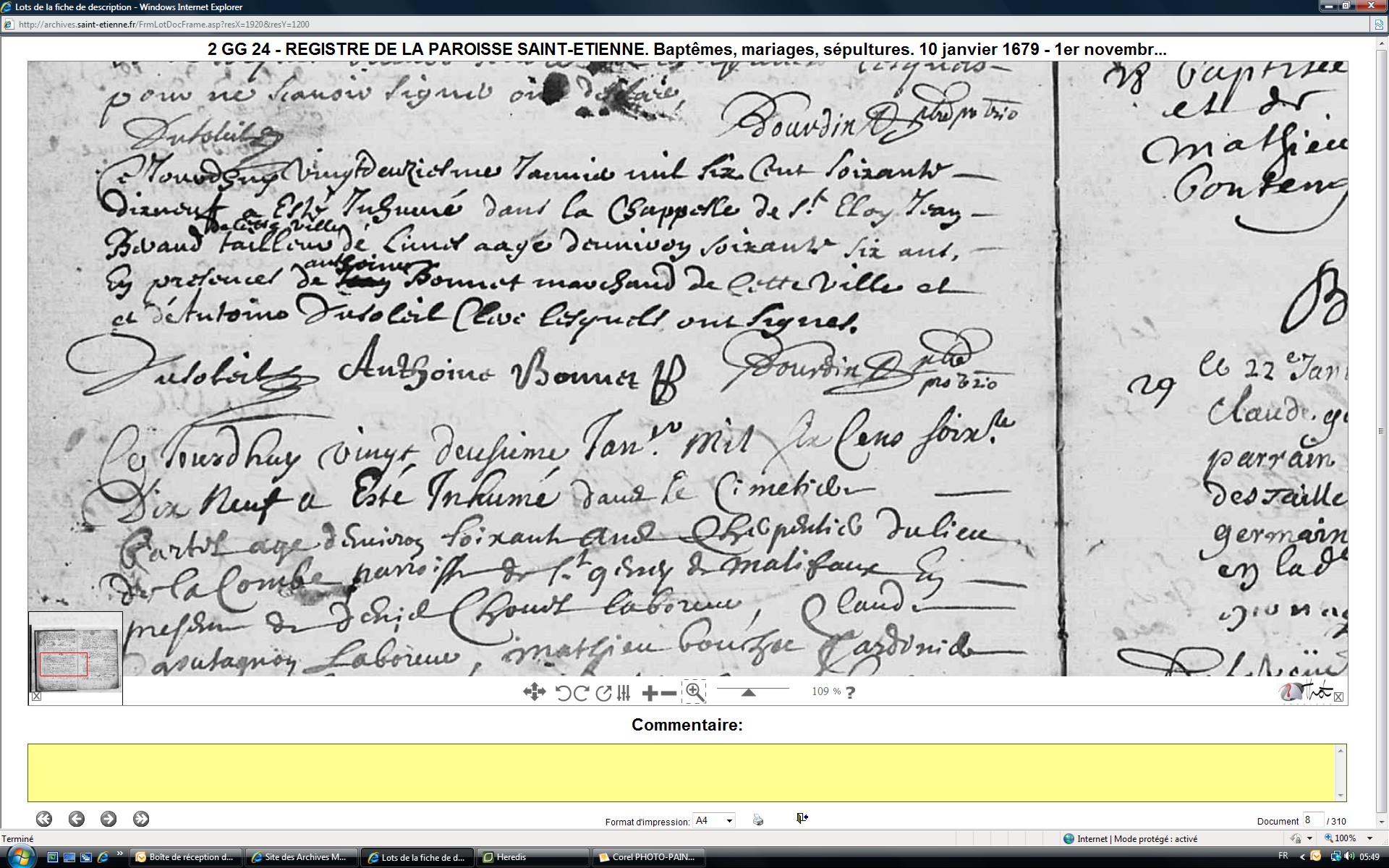 Naissance : calculée 1613 à Saint-Étienne 42100 Décès : 22 janvier 1679 à Saint-Étienne 42100