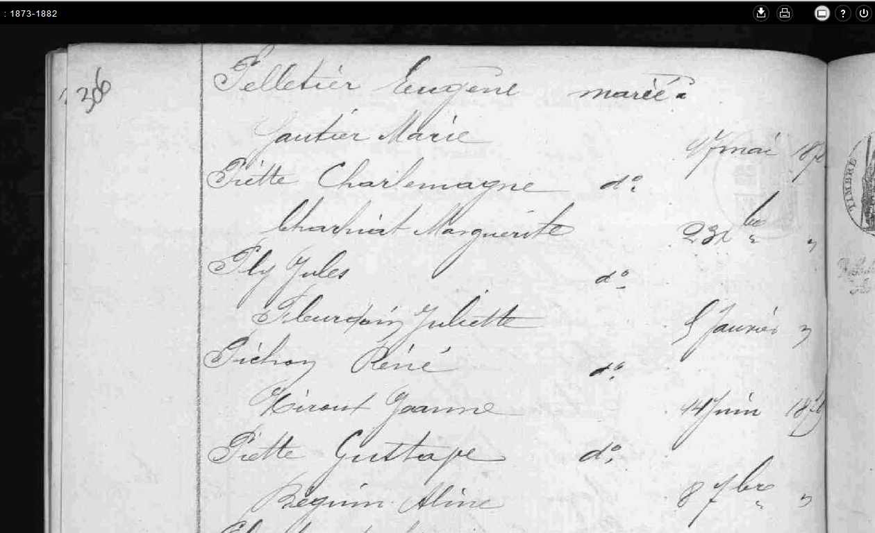 Mère : LACROIX Sophie Joseph ( (c) 1837 - > 1876 )