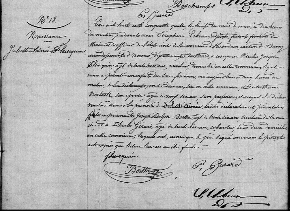 Naissance : 17 ventôse an VII à Houdain Lez Bavais 59315