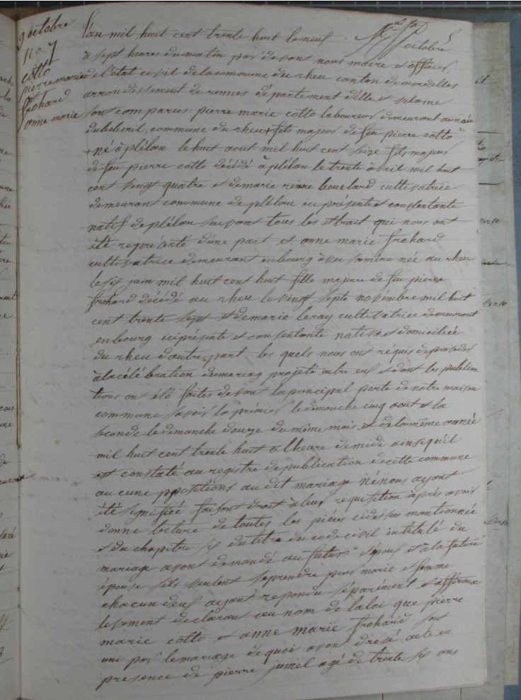 Mariage : 6 octobre 1838 à Le Rheu 35650