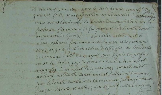 Mariage : 19 juin 1792 à La Chapelle-Thouarault 35590