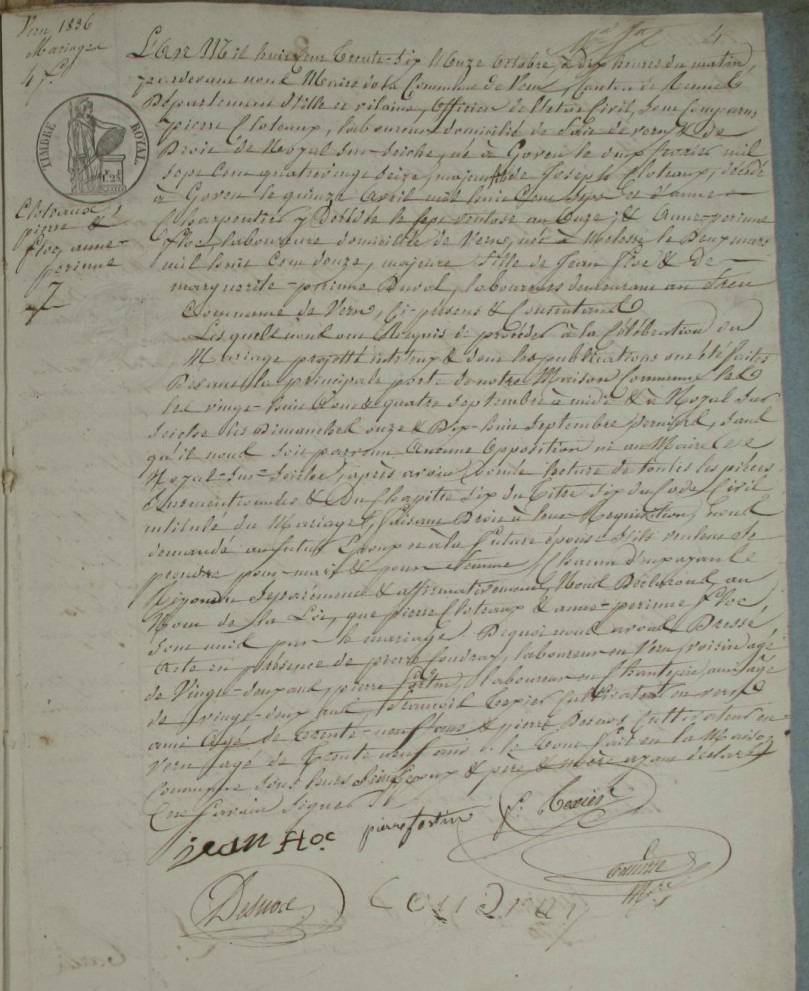 Mariage : 11 octobre 1836 à Vern-Sur-Seiche 35770
