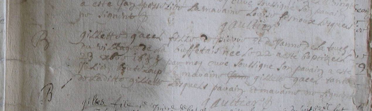 attention doublon en 1752 avec Gillette GASSEL femme de Guillaume GAUTIER du village de la touche brard