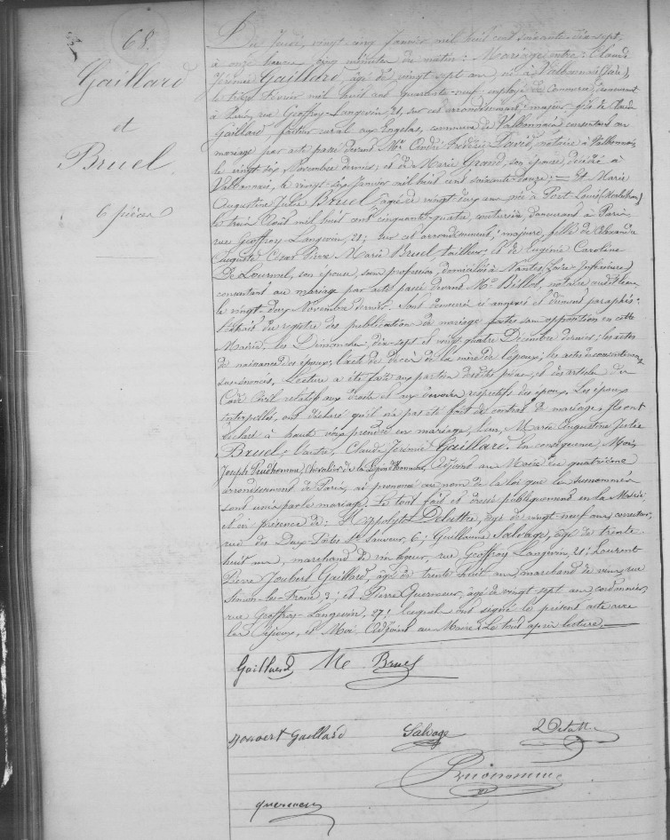 Officiant : ESNAUD, maireDécès : 8 décembre 1879 à Guignen 35580 Maugendrais