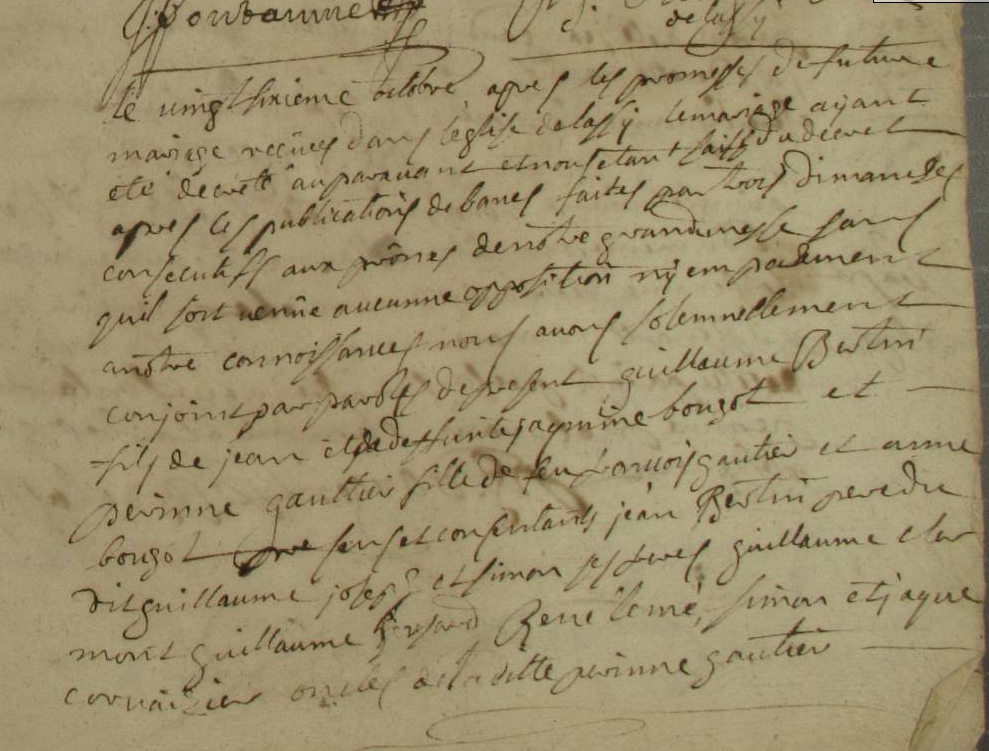 Michel BAZILLE 1651-1688 marié en 1675, Saint-Senoux,35312, Ille-et-Vilaine, Bretagne, FRANCE, avec Julienne PAVOISNE dont
