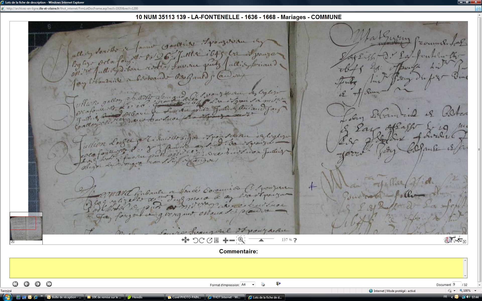 Mariage : 26 juillet 1645 à La Fontenelle 35560