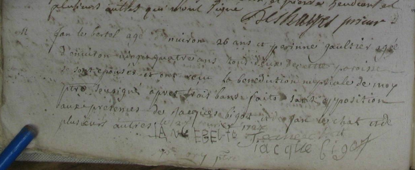 Mariage : 27 février 1724 à Bazouges-La-Pérouse 35560