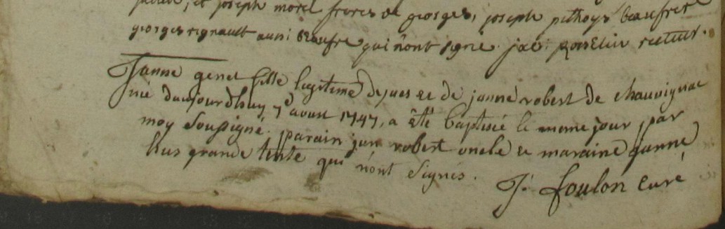 Baptême : 29 avril 1740 à Guichen 35580 Chauvignac