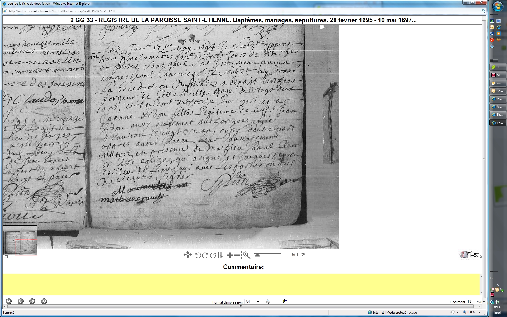 Mariage : 17 mai 1694 à Saint-Étienne 42100 Paroisse Saint-Etienne
