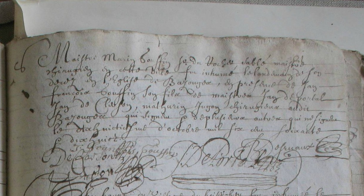 Naissance : avant 1646 à Bazouges-La-Pérouse 35560 Décès : 18 octobre 1678 à Bazouges-La-Pérouse 35560