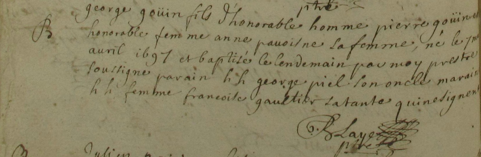 Témoins :GOUIN Jacques ( 1640 - > 1691 )