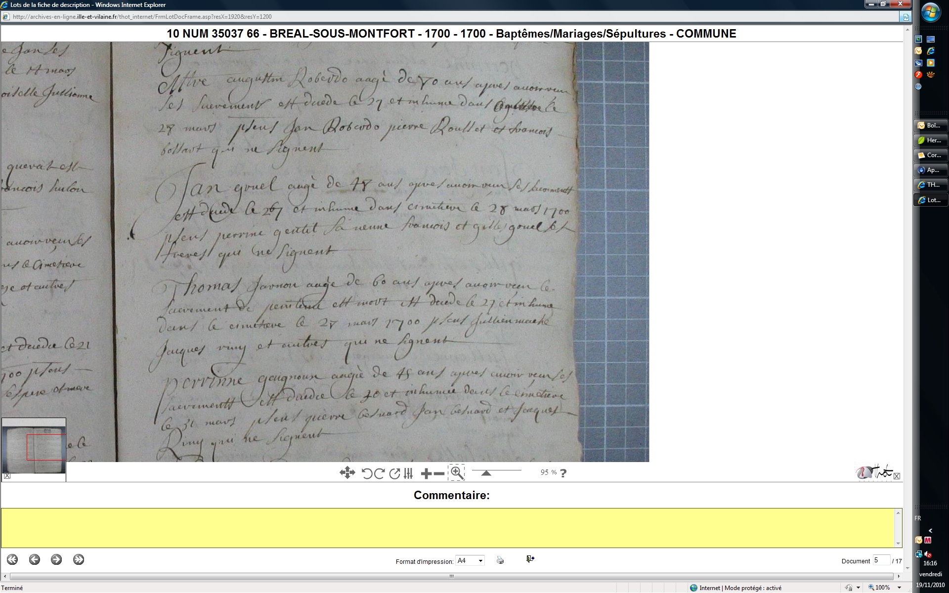 Naissance : calculée 1655 Décès : 3 décembre 1690 à Bréal-Sous-Montfort 35310 Dans la ville