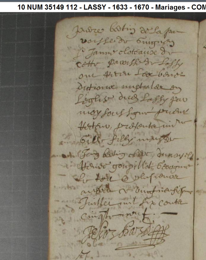 Union : CLOTEAUX Jeanne ( < 1643 - > 1659 )
