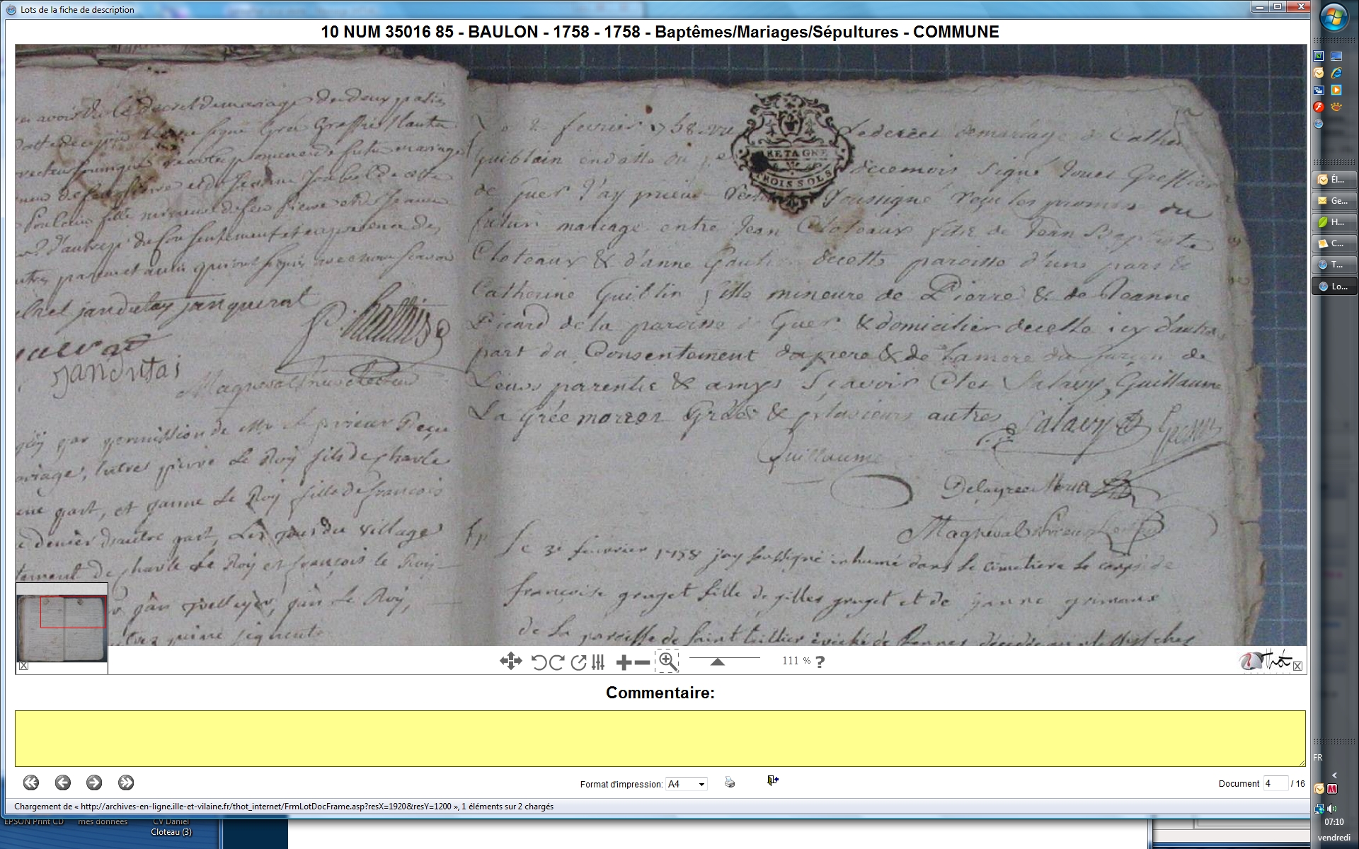 Promesse de mariage : 2 février 1758 à Baulon 35580