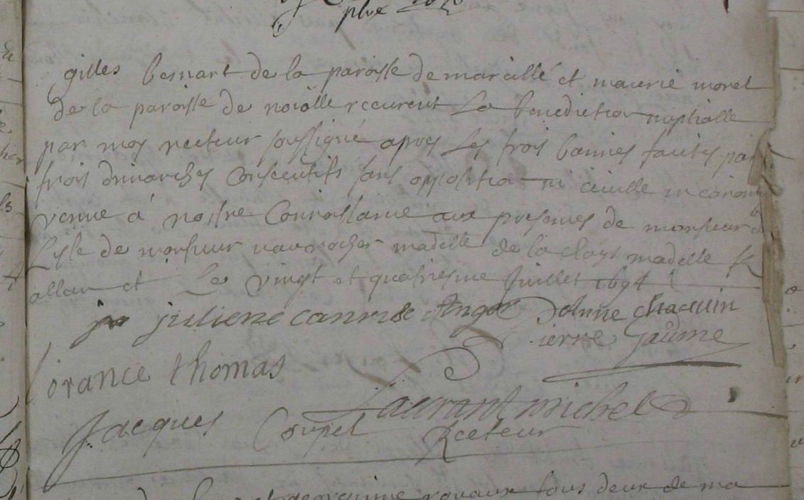 Mariage : 24 juillet 1694 à Marcillé-Raoul 35560