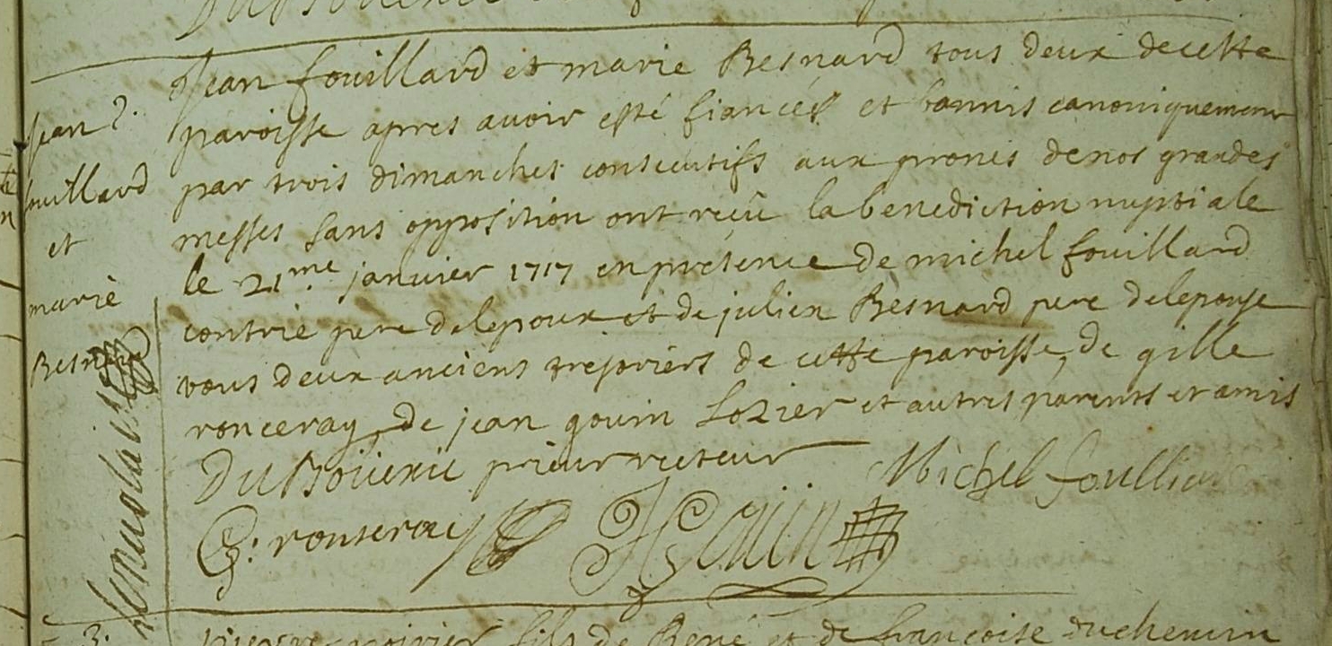Mariage : 21 janvier 1717 à La Bazouge-Du-Désert 35420