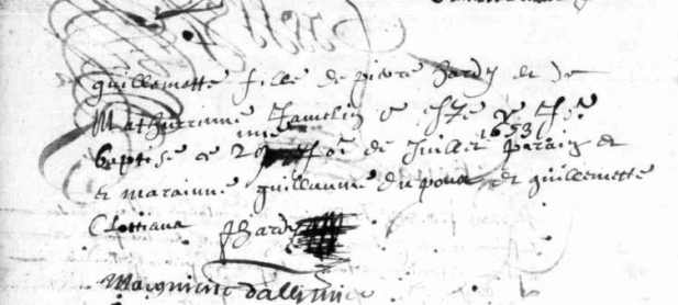Père : HARDY Pierre ( < 1638 - > 1653 )