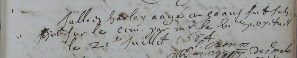 Inhumation : 21 juillet 1684 à Saint-Malo 35400 Cimetière