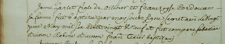 Baptême : 23 janvier 1657 à Saint-Malo 35400