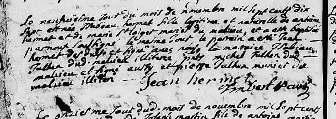 Père : HERMET Pierre ( < 1720 - > 1740 )