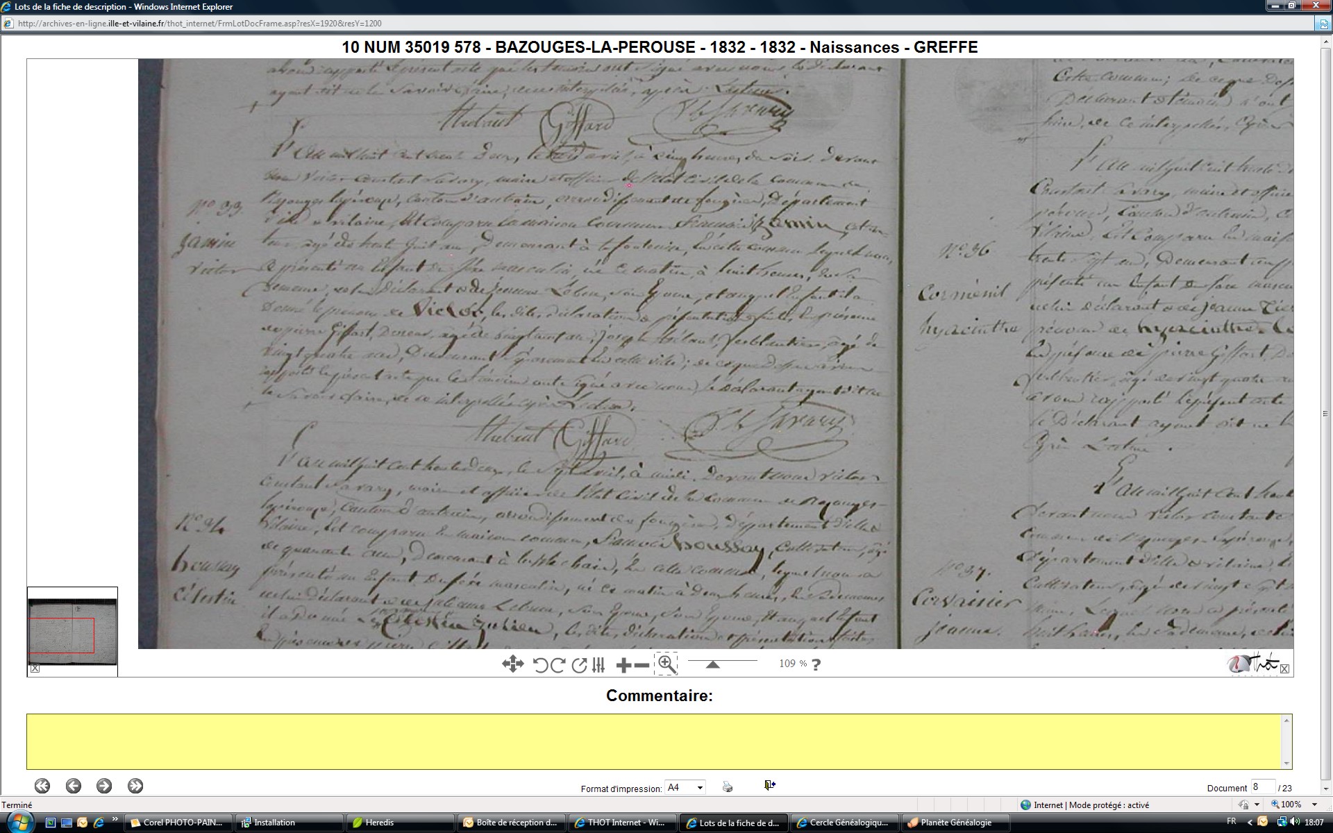 Naissance : 8 avril 1830 à Bazouges-La-Pérouse 35560 Décès : après 1858