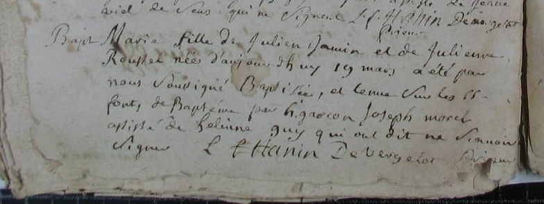 Père : JAMIN Julien ( 1696 - < 1758 )