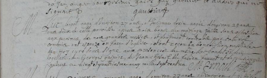Mariage : 24 mai 1701 à Bazouges-La-Pérouse 35560