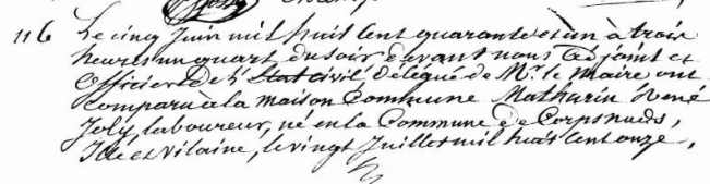 Naissance : 20 juillet 1811 à Corps-Nuds 35150 Décès : avant 1875