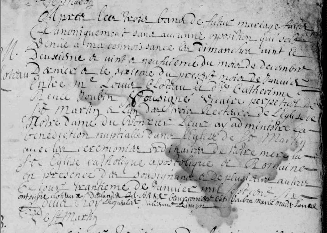 Mariage : 30 janvier 1706 à Josselin 56120 Saint Martin