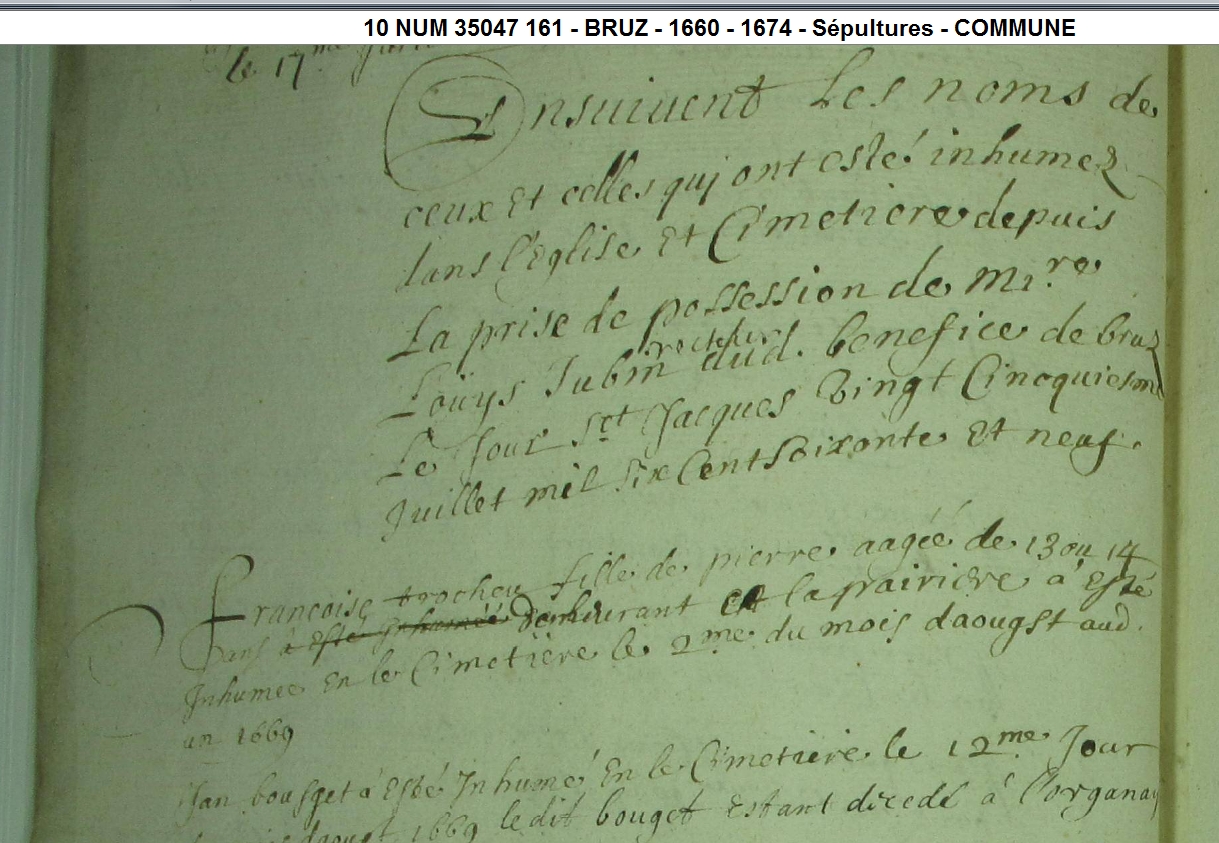 il signe LJubin(gribouilli)Décès : 27 décembre 1659 à Goven 35580 Eglise