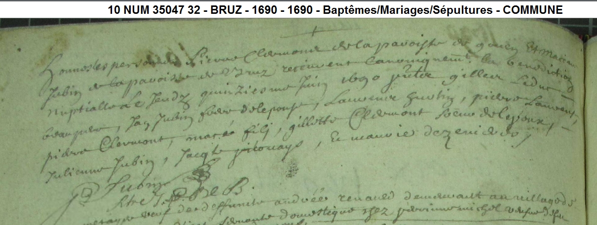 Fiançailles : 15 juin 1690 à Bruz 35170