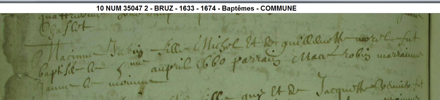 Père : JUBIN Michel ( < 1660 - <> 1692 & 1712 )