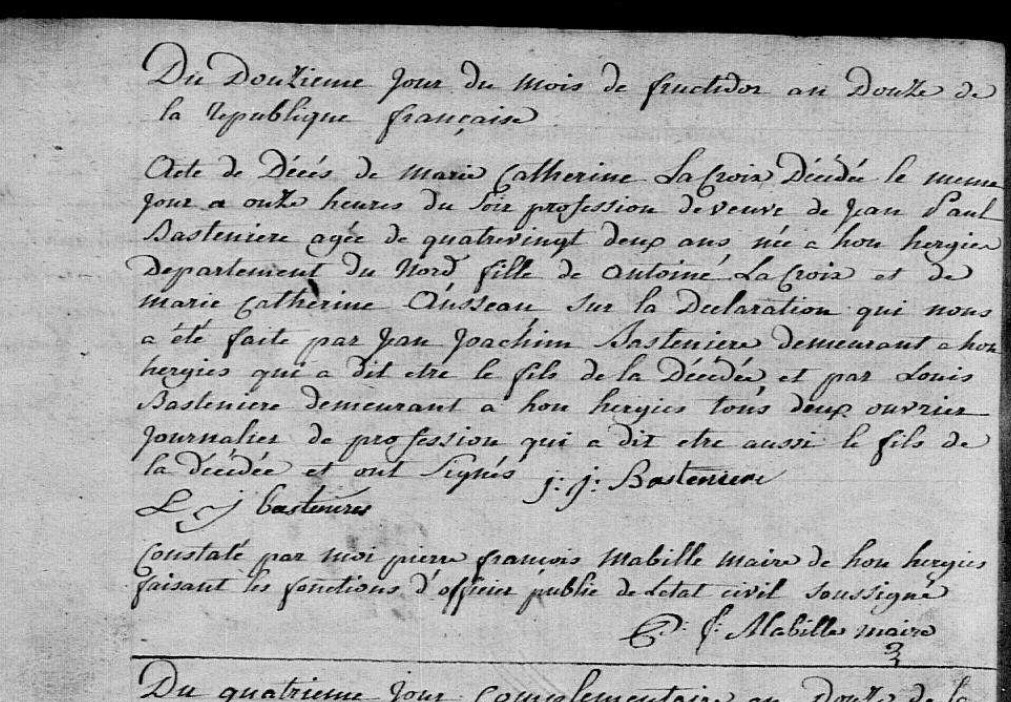 Décès : 22 vendémiaire an X à Solesmes 59730