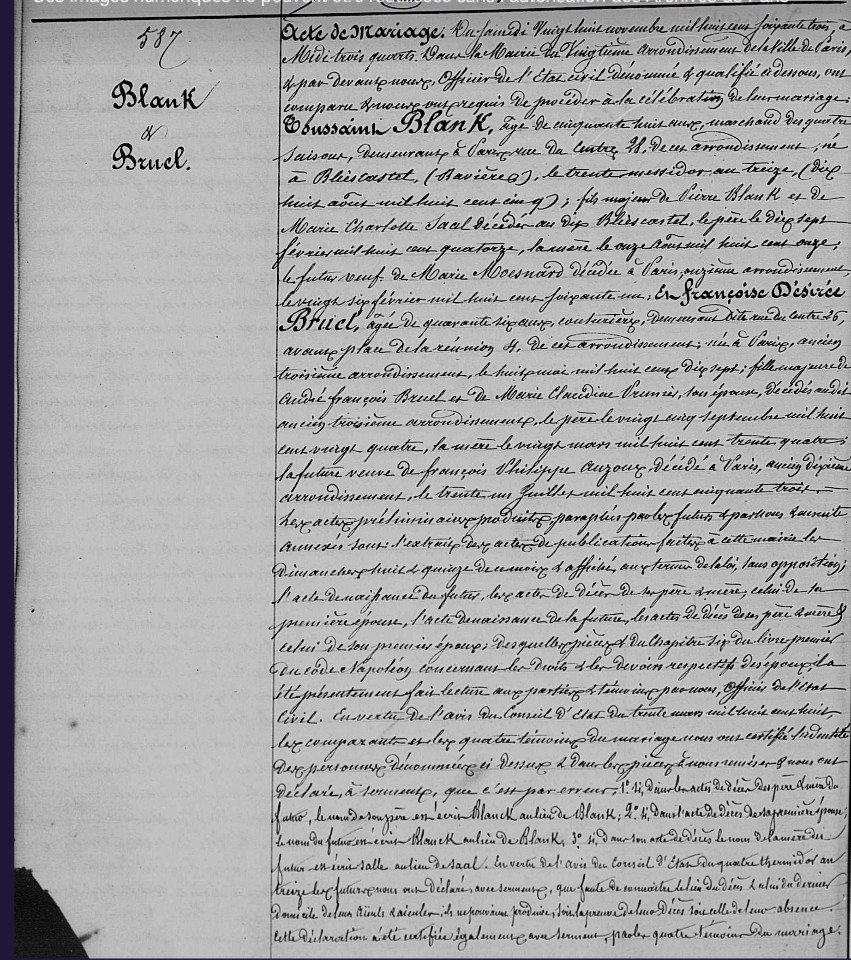 Mariage : 28 novembre 1863 à Paris 20ème 75120