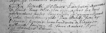temoin mariage: Guillemette LANGEVIN (1685-) Soeur -