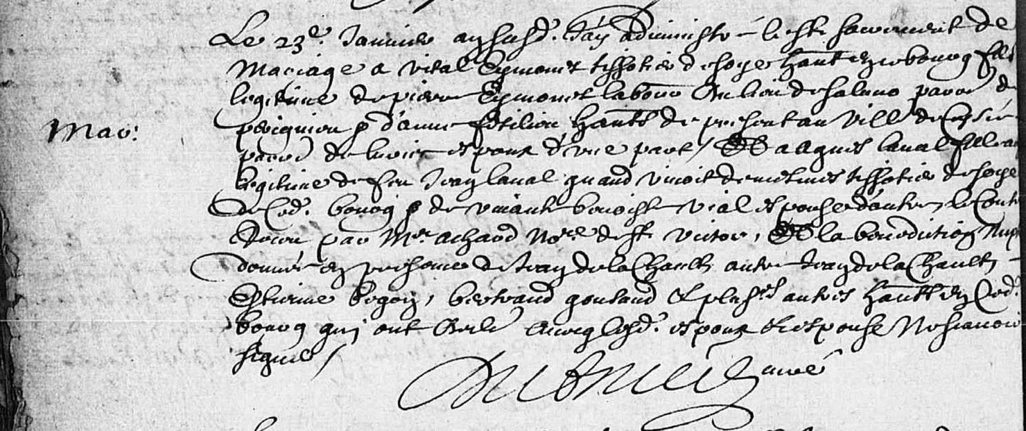 Mariage religieux : 19 mai 1701 à Saint-Étienne 42100 Saint Victor sur Loire