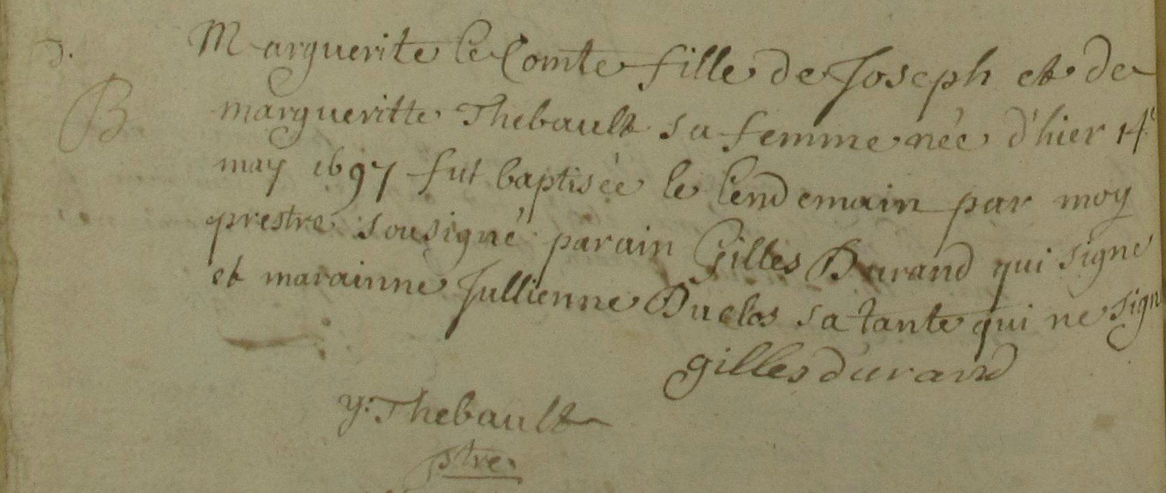 Témoins :DURAND Gilles ( 1660 - > 1697 )