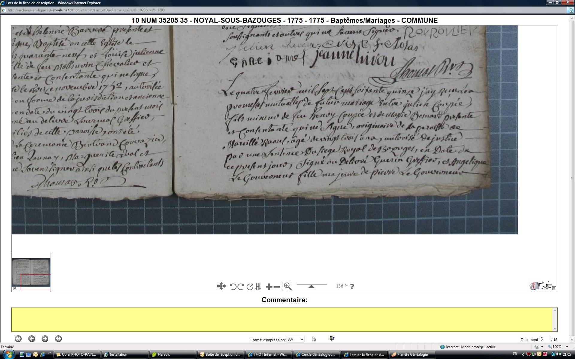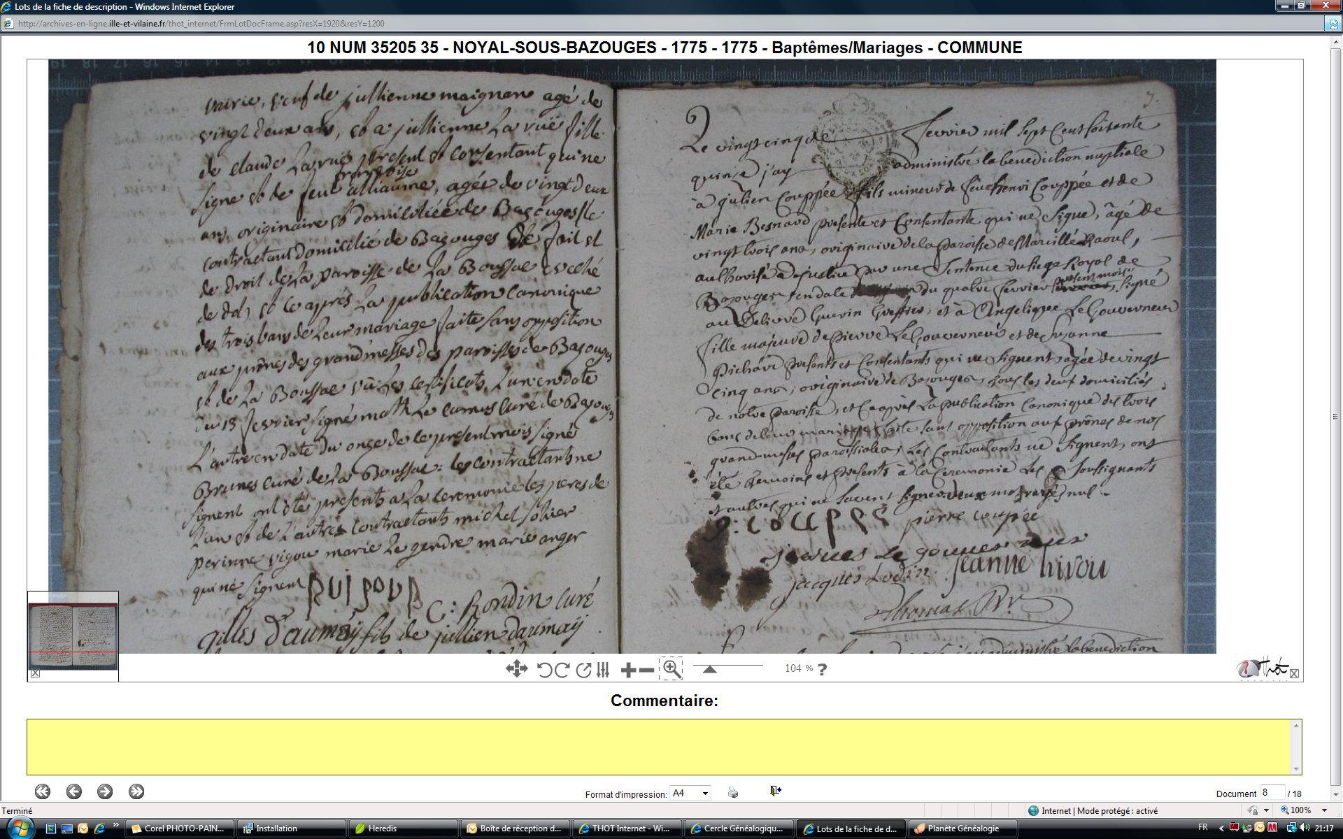 Mariage : 25 février 1775 à Noyal-Sous-Bazouges 35560
