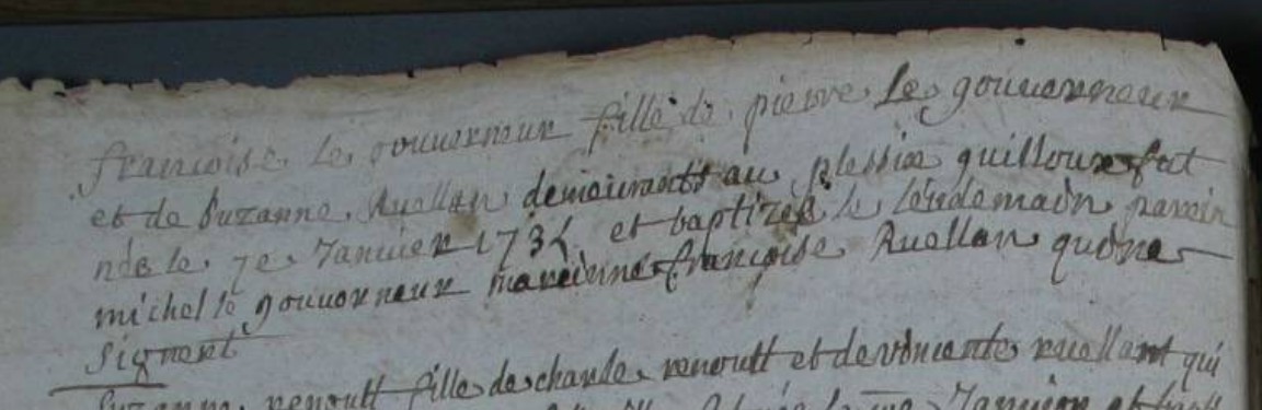 Témoins :LE GOUVERNEUR Michel ( < 1725 - > 1742 )