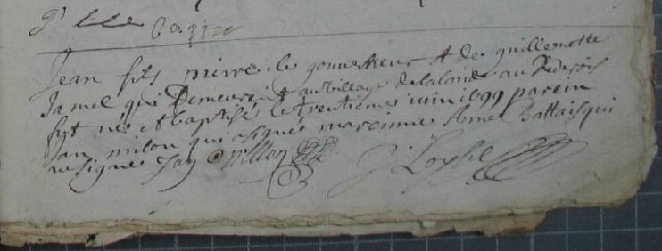 Baptême : 15 septembre 1744 à Bazouges-La-Pérouse 35560 Village des Loges Décès : 1er octobre 1744 à Bazouges-La-Pérouse 35560