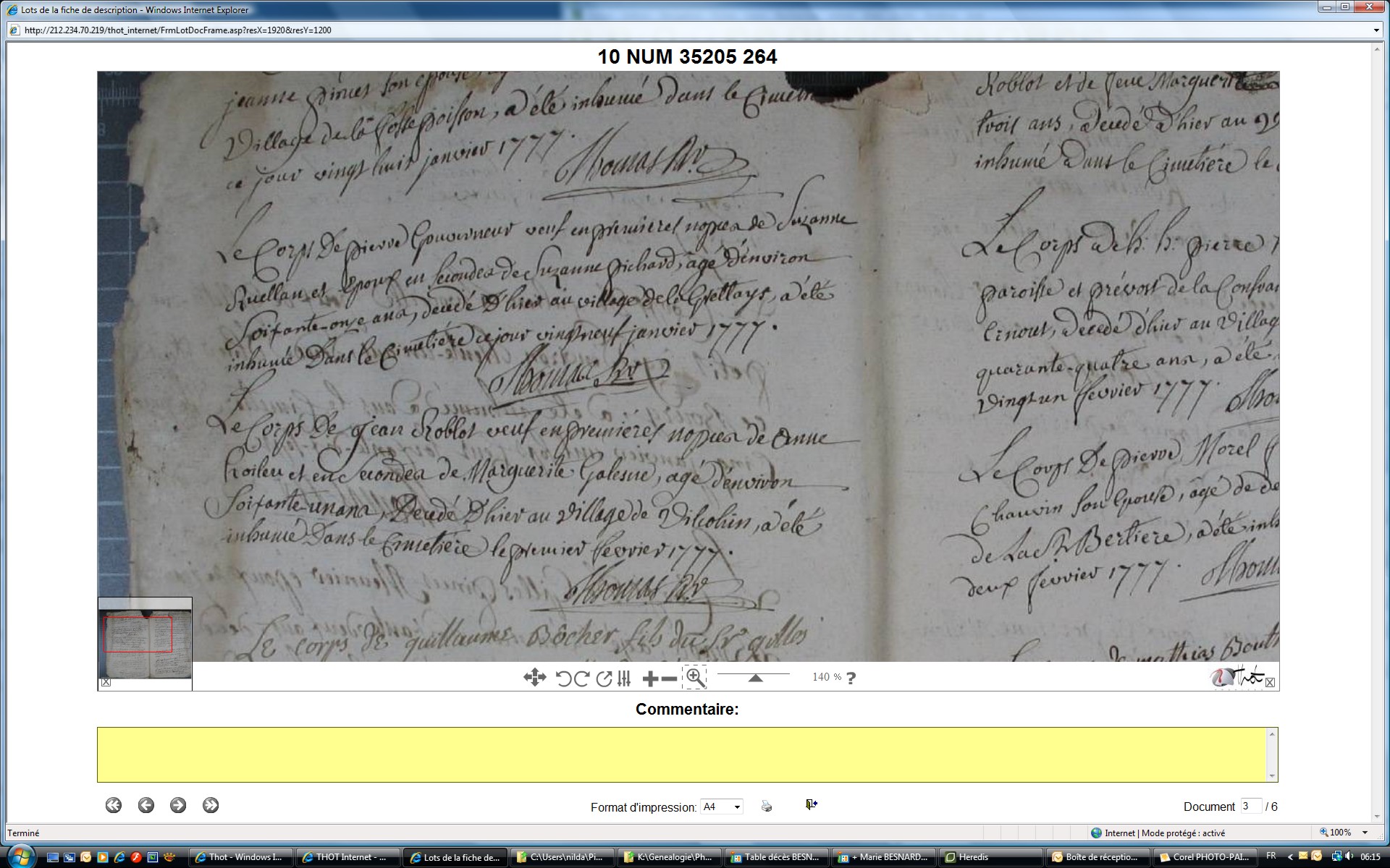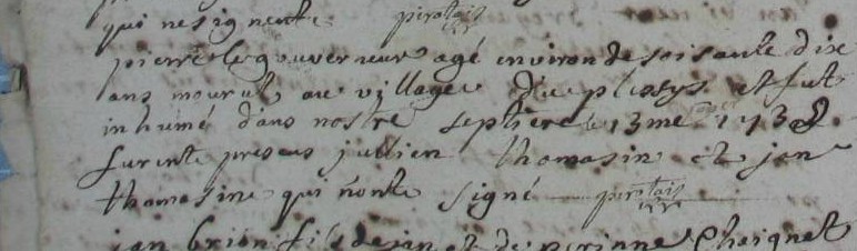 Naissance : calculée 1668 Décès : 13 janvier 1738 à Saint-Ouen-La-Rouërie 35460 village du Plessys
